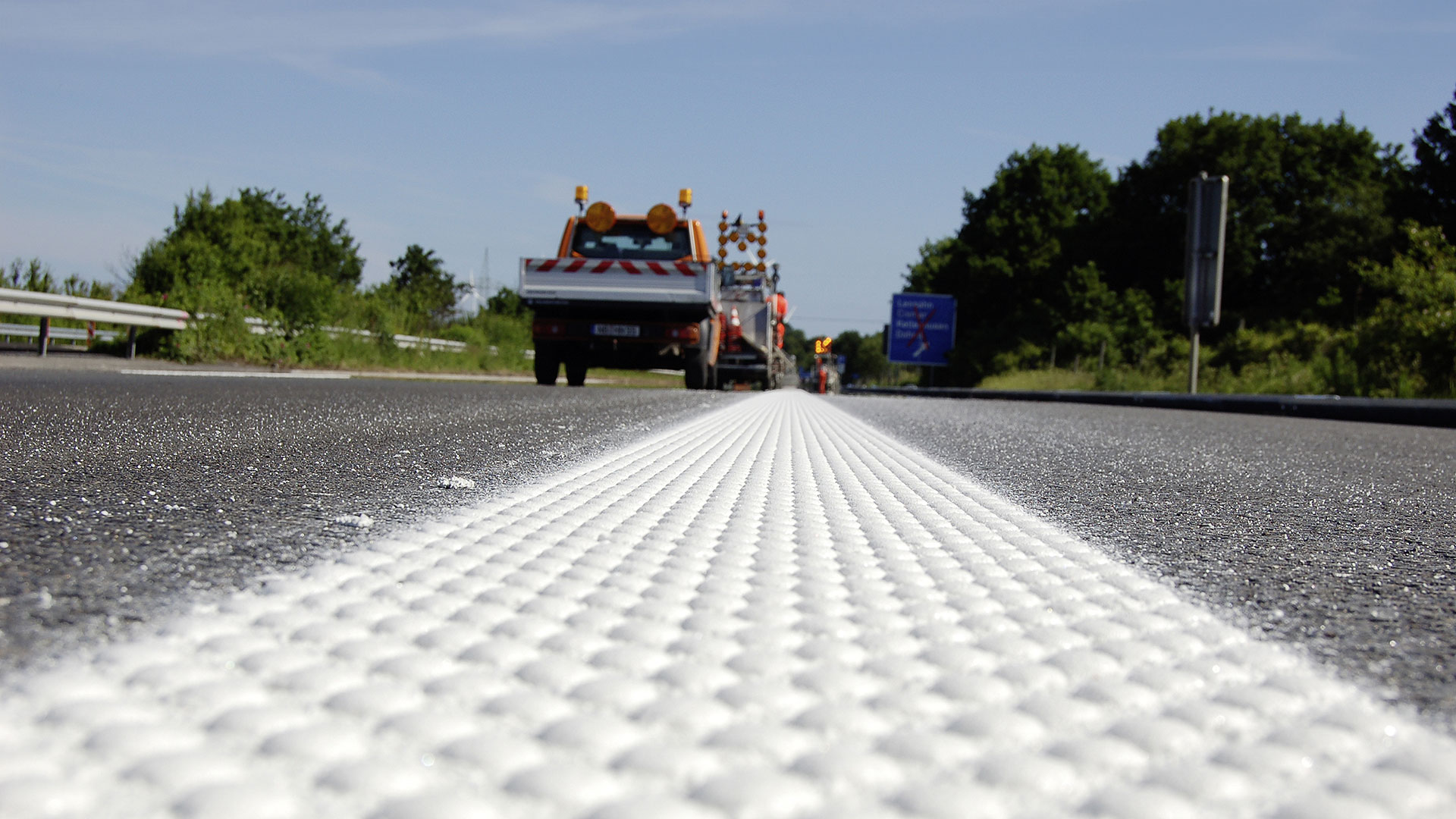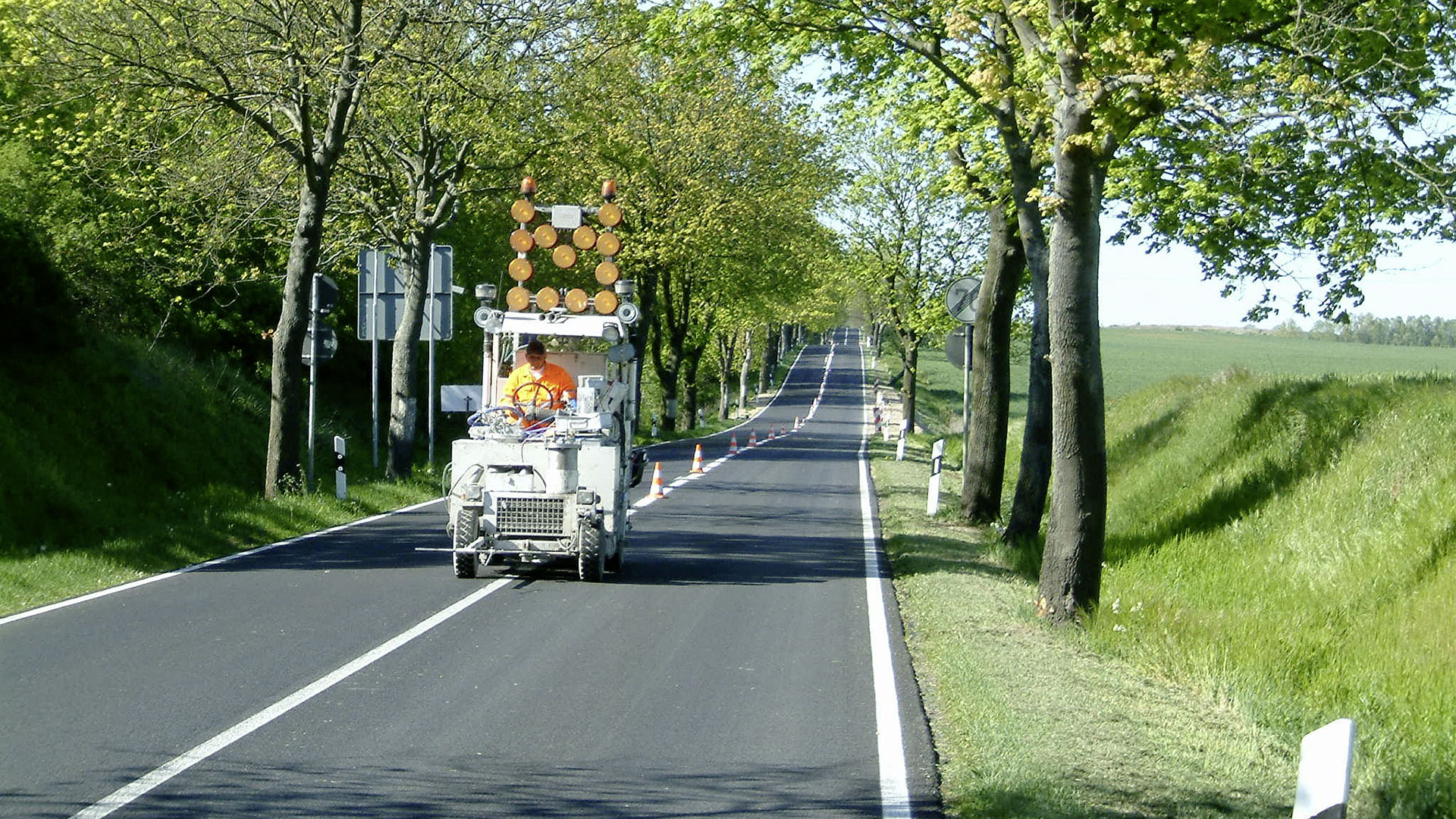 Alle für die Fahrbahmarkierung und -demarkierung notwendigen Verkehrssicherungsmaßnahmen führen wir in Eigenregie durch.
