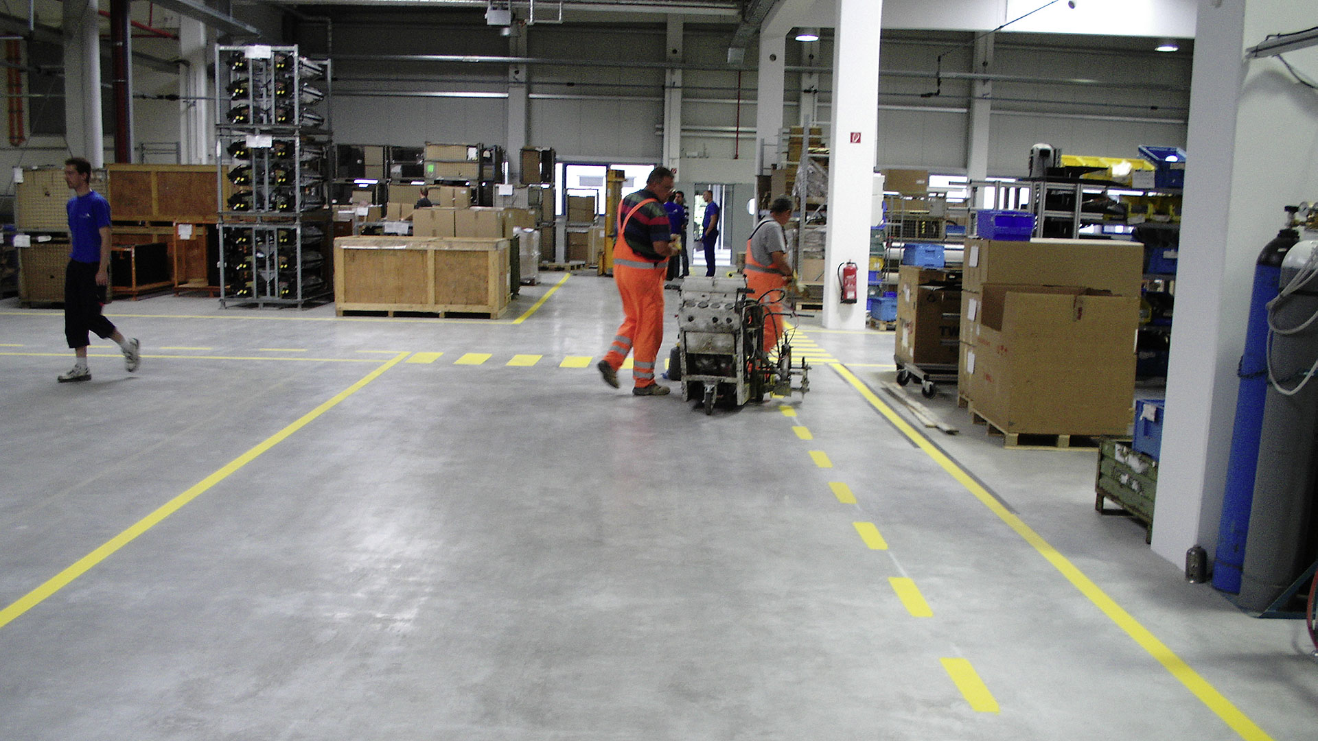 Fahrbahnmarkierung und Demarkierung auf Straßen, Flughäfen, Betriebsgeländen, Hallen, Parkplätzen, Tiefgaragen als Neu-, Ergänzungs- und Auffrischungsmarkierung.