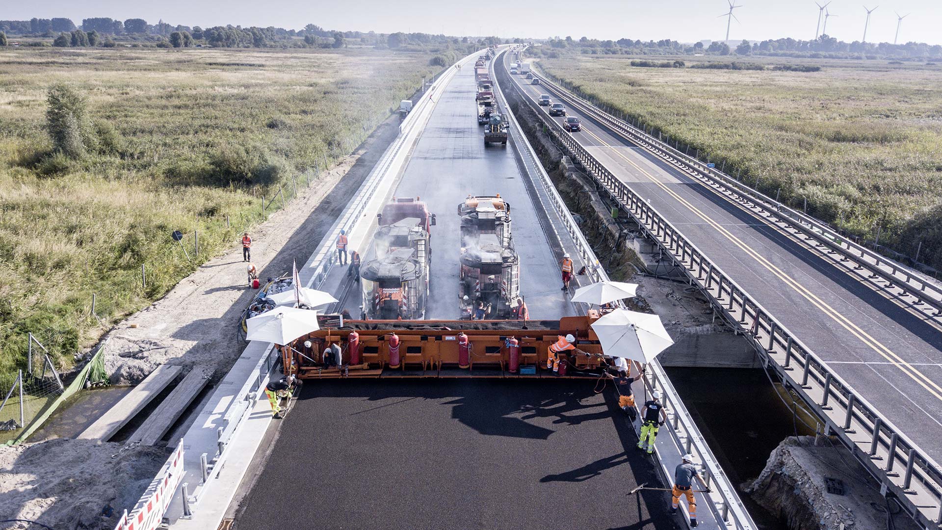 Unser Expertenteam realisiert Projekte im Neubau sowie in der Sanierung von Autobahnen, Bundes- und Landstraßen. Dabei entstehen griffige und lärmmindernde Fahrbahnoberflächen, die modernste Anforderungen an Verkehrssicherheit und Lärmschutz erfüllen.